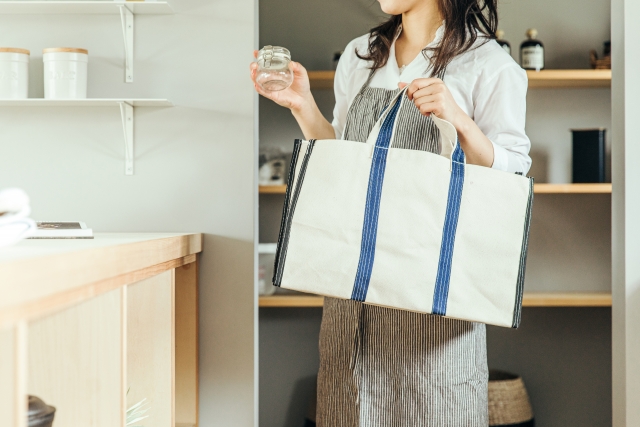スーパーから帰宅後、玄関で荷物を下ろしてすぐにパントリーに収納できるため、キッチンまで荷物を運ぶ手間が省け、家事の負担を軽減できます。