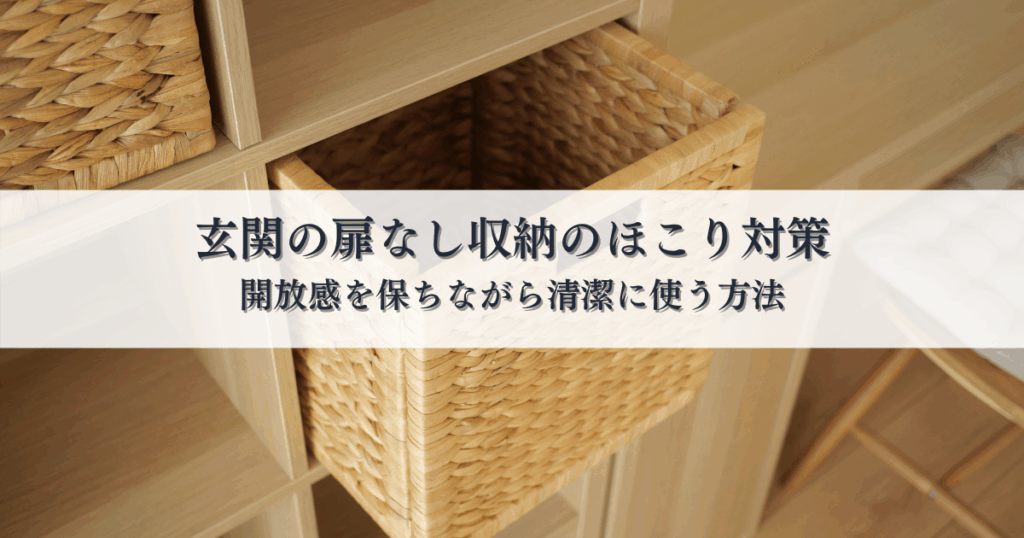 玄関特有の砂埃や塵が侵入しやすい環境であり、その侵入経路が常に開いているという二重の要因が重なることで、扉なし収納では、内部に収納されている物品へほこりが付着する頻度が著しく高まります。