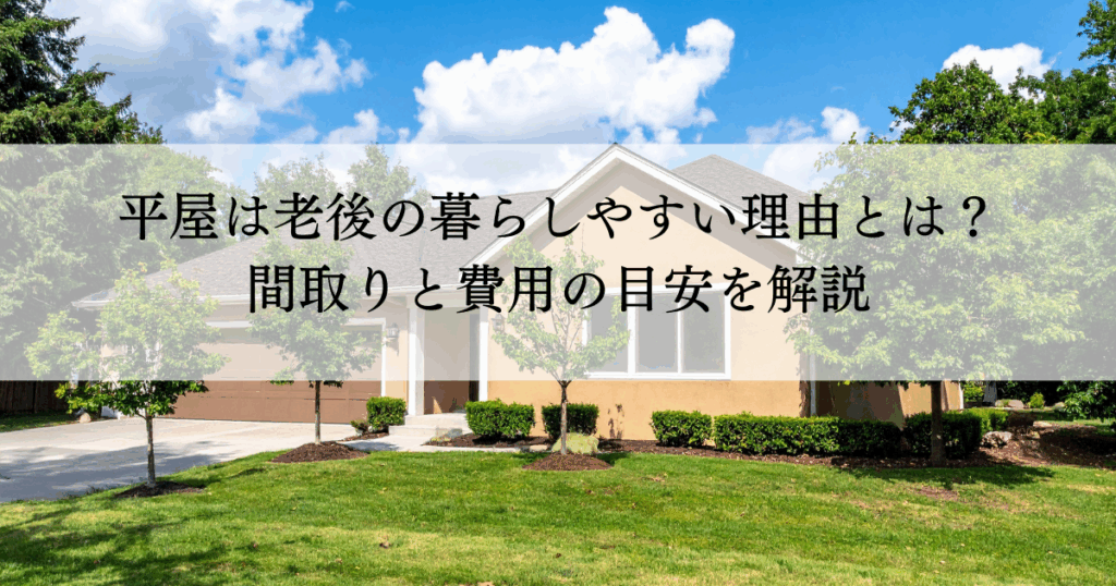 今回は、平屋がなぜ老後の暮らしに適しているのか、なぜ注目されているのか、その理由と具体的な間取り、費用について解説します。